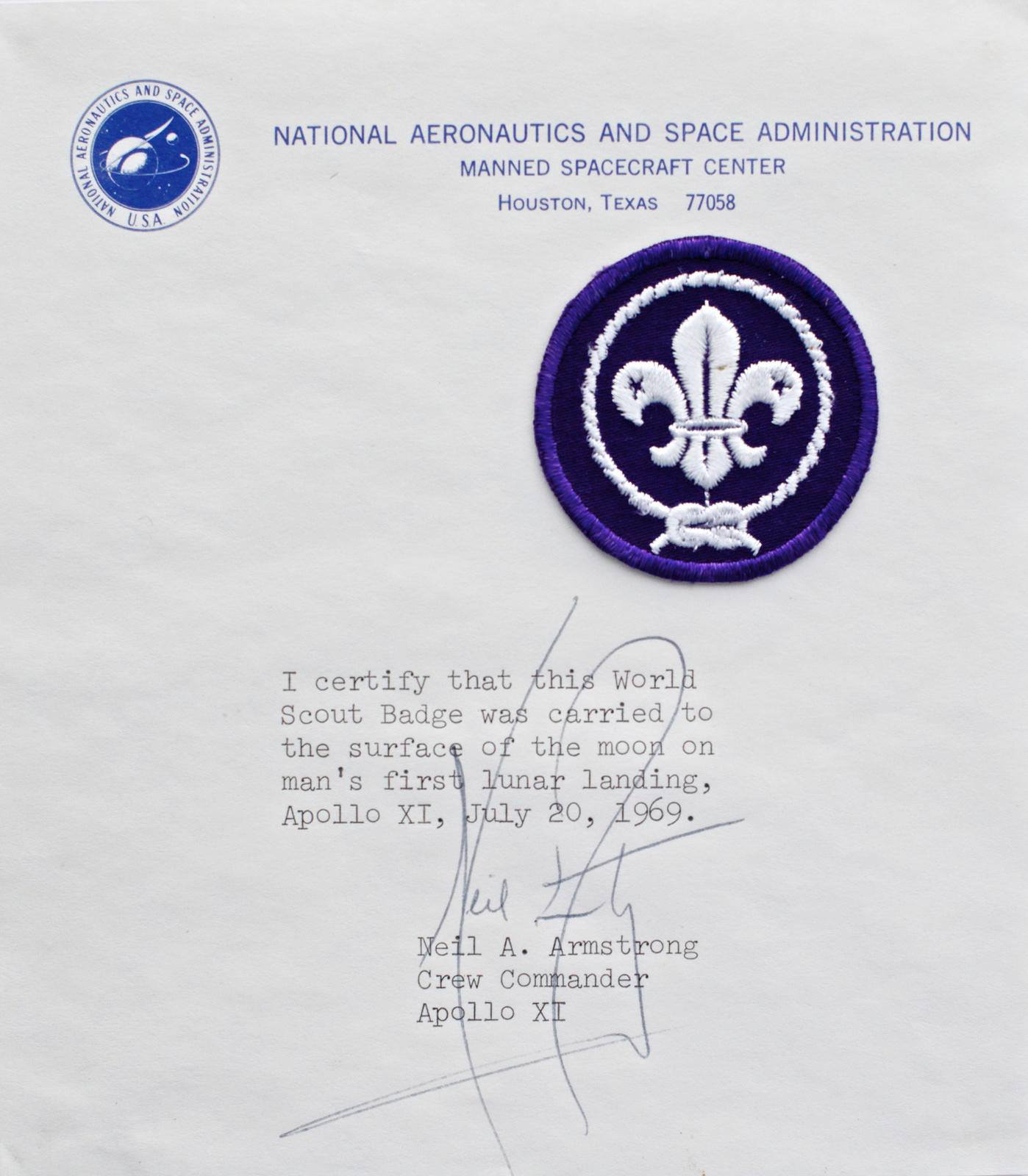 月面着陸に成功した、アポロ11号のアームストロング船長はボーイスカウトの最高位であるイーグルスカウトでした。お馴染みのスカウトバッチを月面にもお供したことはご存知ですか?