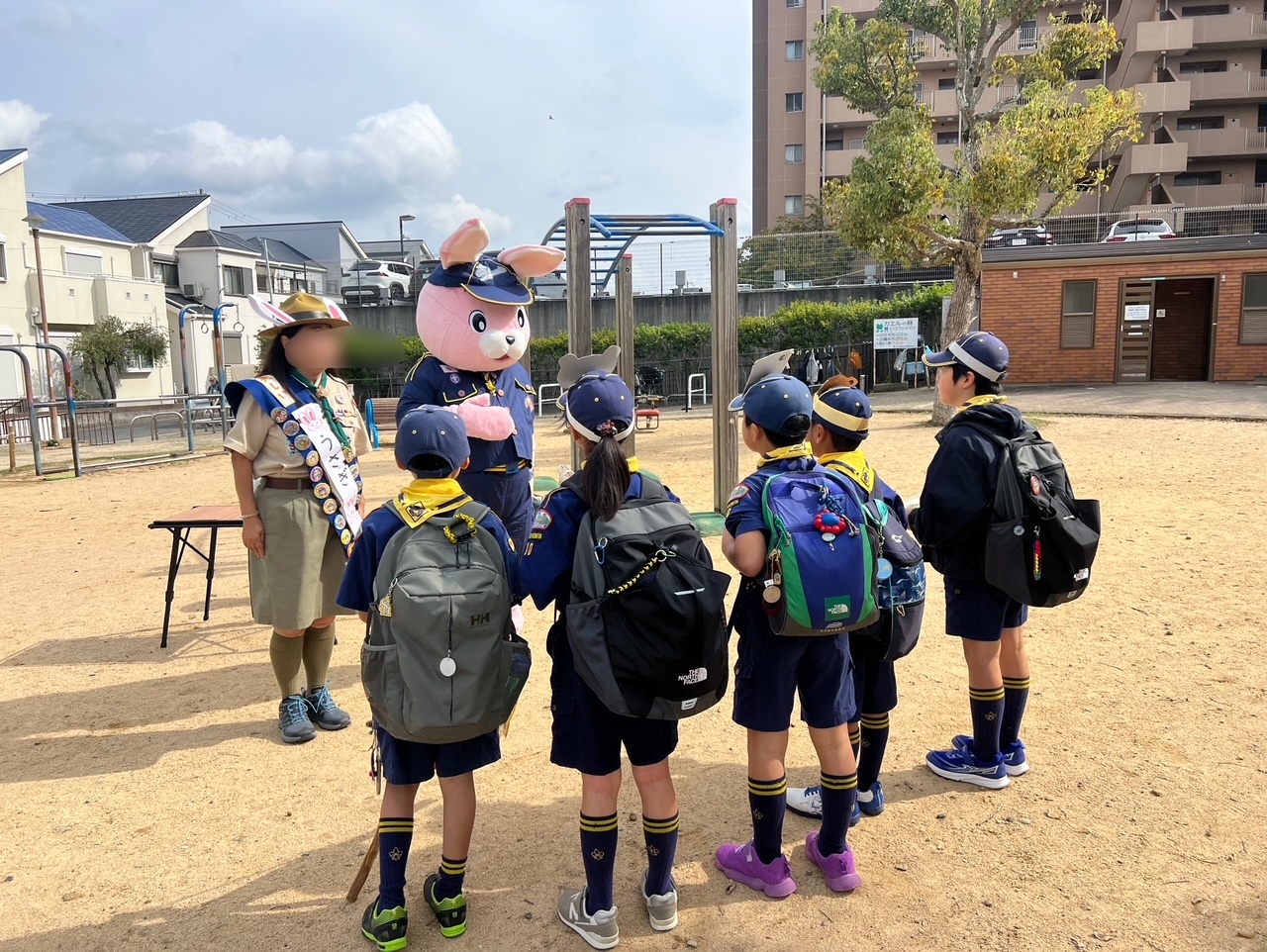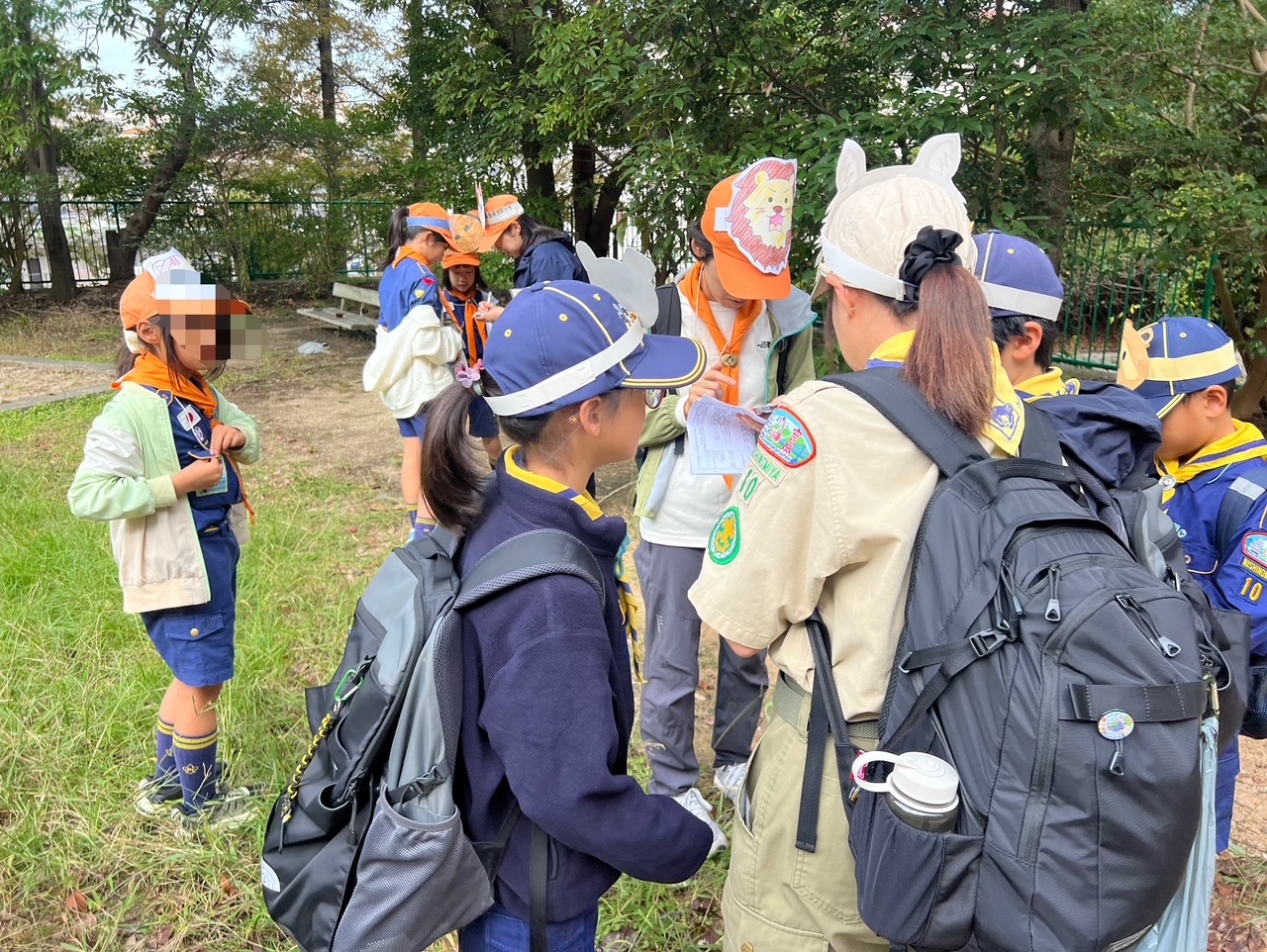 途中途中で出会う、他のカブ隊とは名刺を交換をします。
